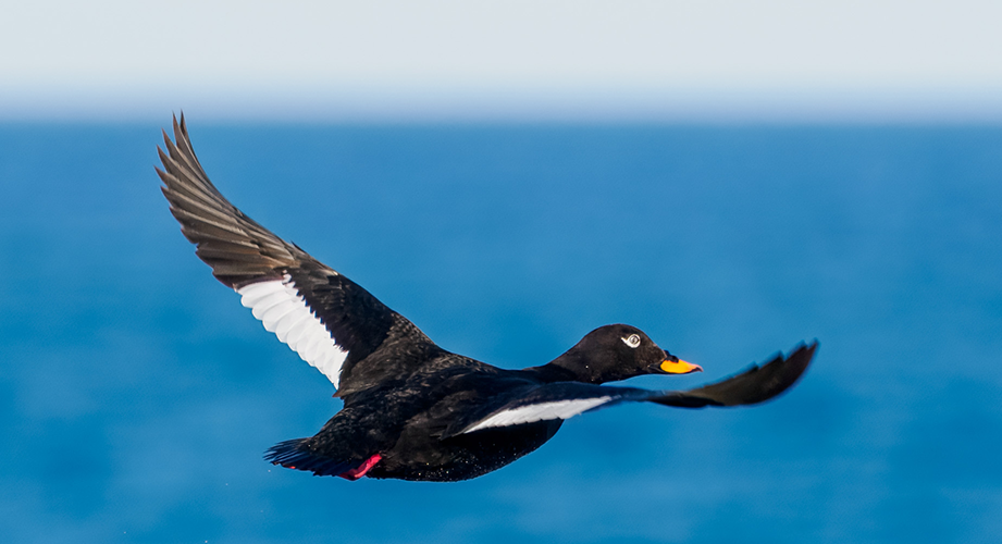 Kuva: Heikki Junnila Pilkkasiipi (Melanitta fusca) on suuri mustanpuhuva sorsalintu. Pilkkasiiven vartalonmuoto muistuttaa haahkaa. Koiraan höyhenpeite on samettisen musta lukuun